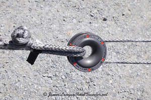 Umlenkrolle für Kunststoffwindenseile. Im Gegensatz zu anderen Pulleys mit einem patentierten Rope Retension System - Seilrückhaltesystem - ausgestattet. Dadurch wird verhindert, dass während des Winch-Vorganges das Windenseil bei nachlassender Spannung von der Rolle kommt und über den Softschäkel läuft.