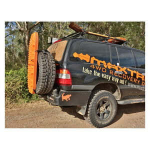 With the MAXTRAX Rear Wheel Harness you can transport your MAXTRAX safely and easily on the vehicle's spare wheel. The belt system is quick and easy to install and makes it easy to get to the sand boards quickly if necessary and sand, mud and snow stay outside the vehicle.